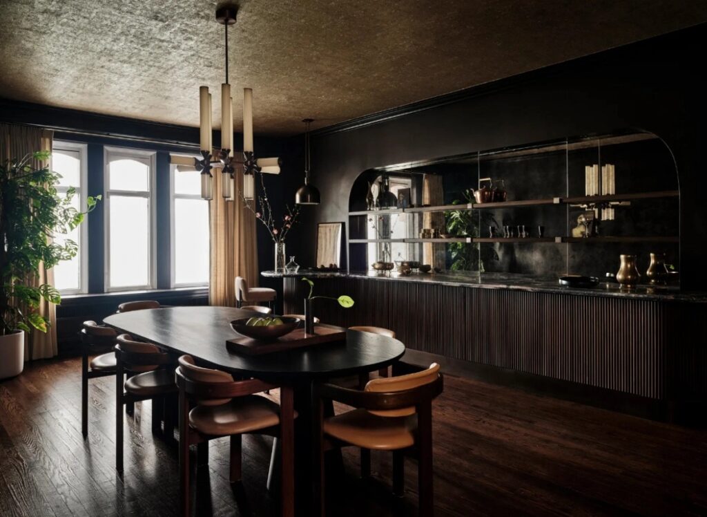 Sử dụng gỗ để tạo điểm nhấn trong căn phòng, ví dụ như bảng điều khiển trên tường, một bộ bàn ăn hoặc một bộ ghế gỗ. Điều này giúp tạo ra sự cân bằng và tạo điểm nhấn cho không gian.